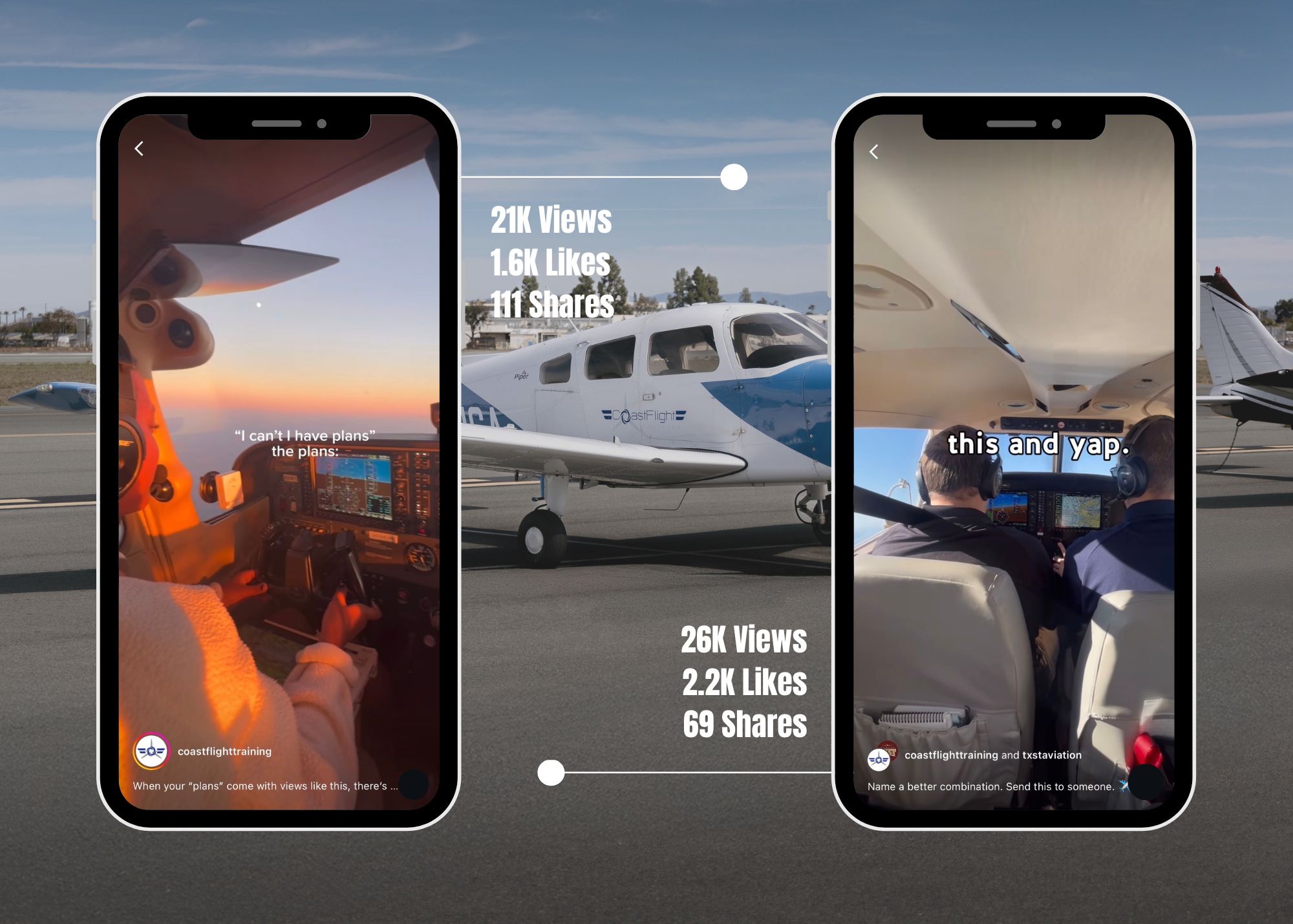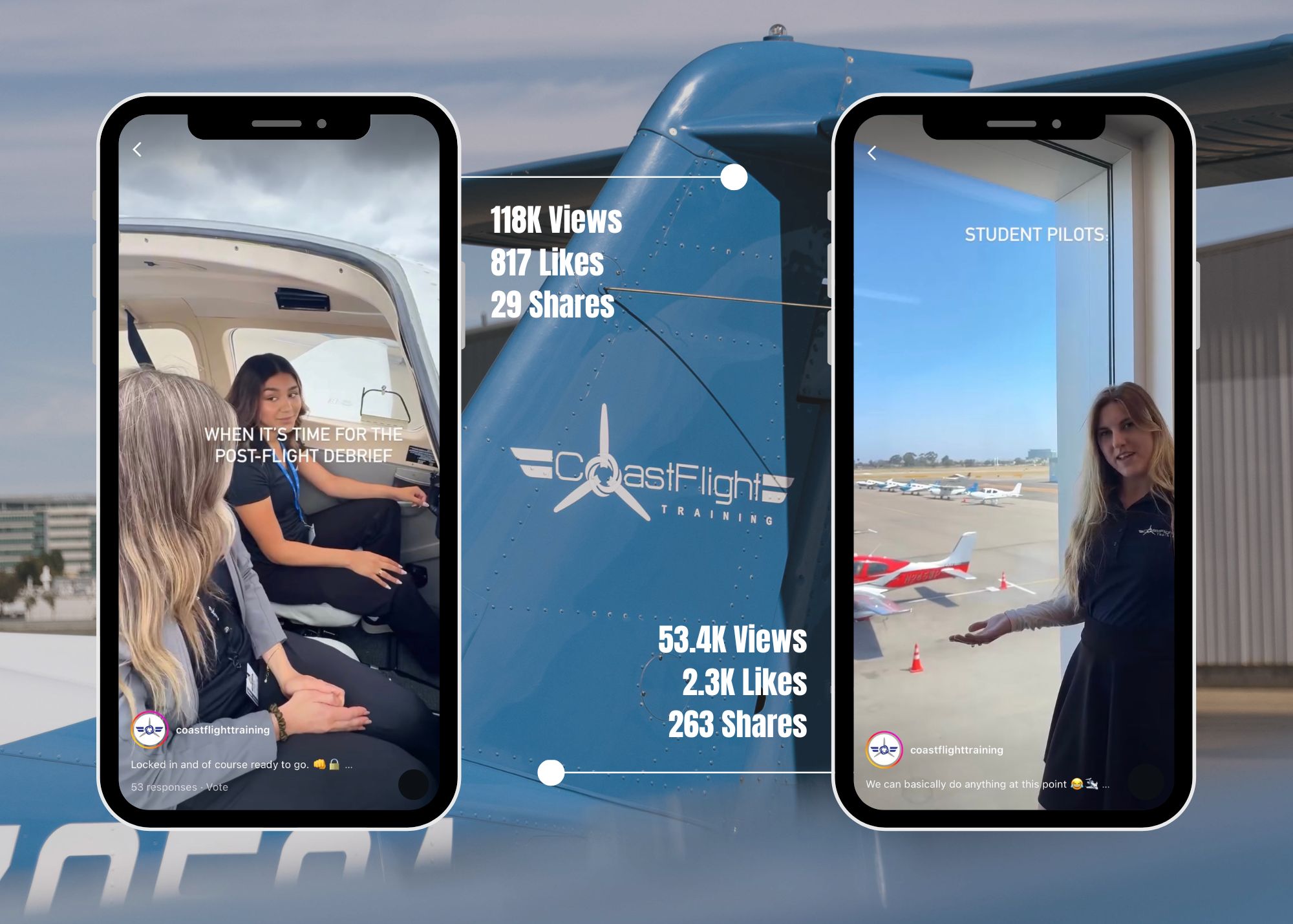 By utilizing the power of social media, we successfully raised their digital profile to match the quality of their exceptional flight school services and FBO offerings. This in turn has attracted new students from around the nation and increased their authority in the FBO space. Overall resulting in increased ROI from having a strategic social media plan across targeted platforms. The successful amplification of this brand has lead to securing other universities as clients, such as Texas State University's Aviation School and the State Center Community College District's study abroad program.